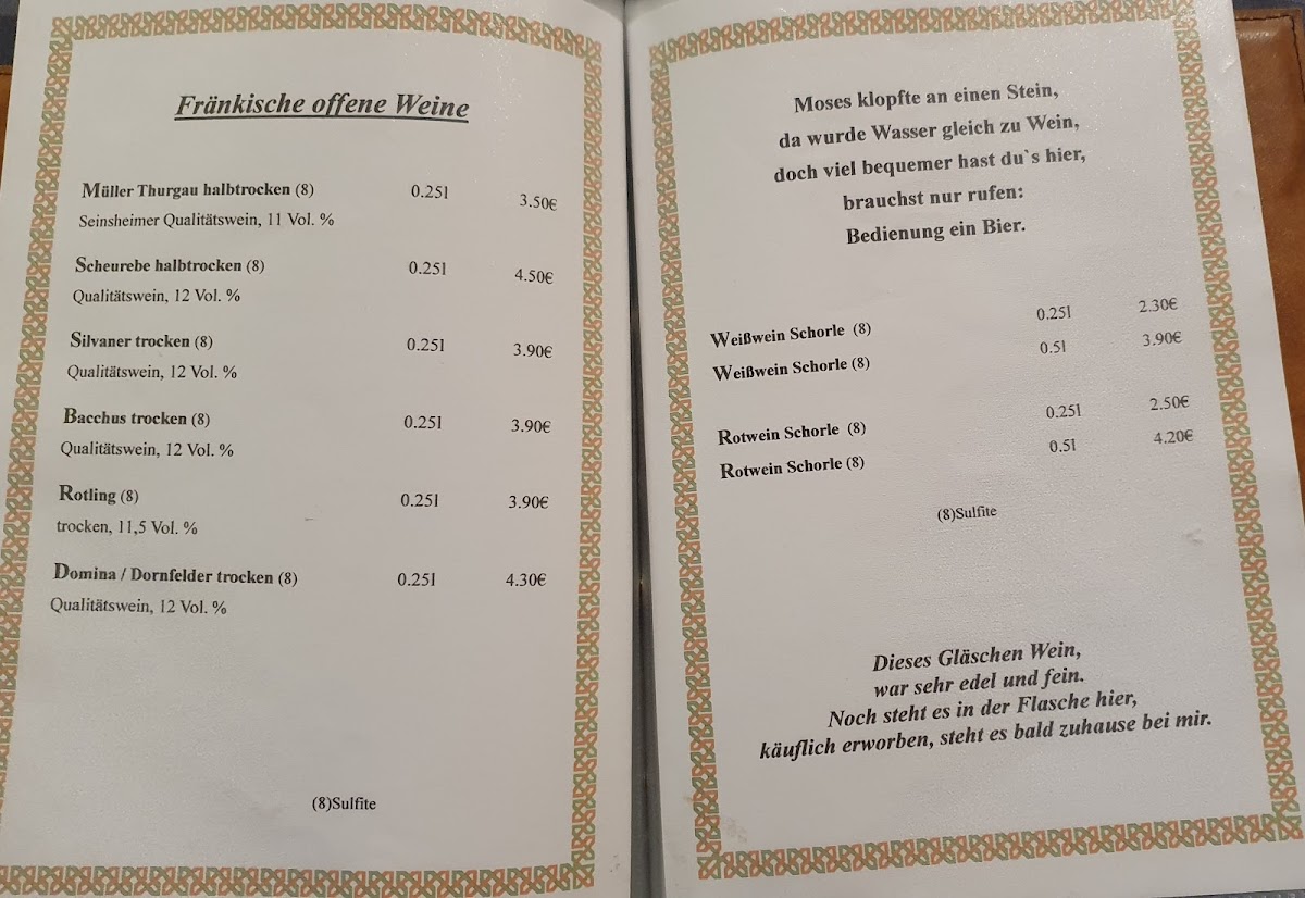 This is a spot best enjoyed on quiet afternoons or relaxed early evenings, where you can settle into the rhythm of small-town Seinsheim life, savoring robust, sincere flavors and a welcoming setting that invites lingering.