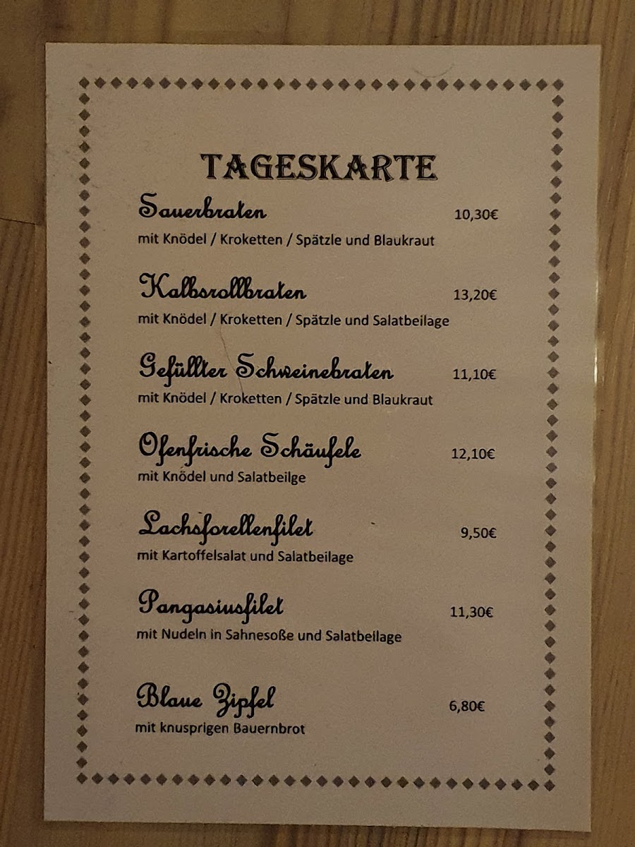 The menu at Gasthaus Kaffeehausle am See mit Biergarten offers a variety of dishes suitable for casual dining, including classic German gastropub fare alongside traditional café specialties. The selection is organized into several key categories to cater to different tastes and meal occasions.